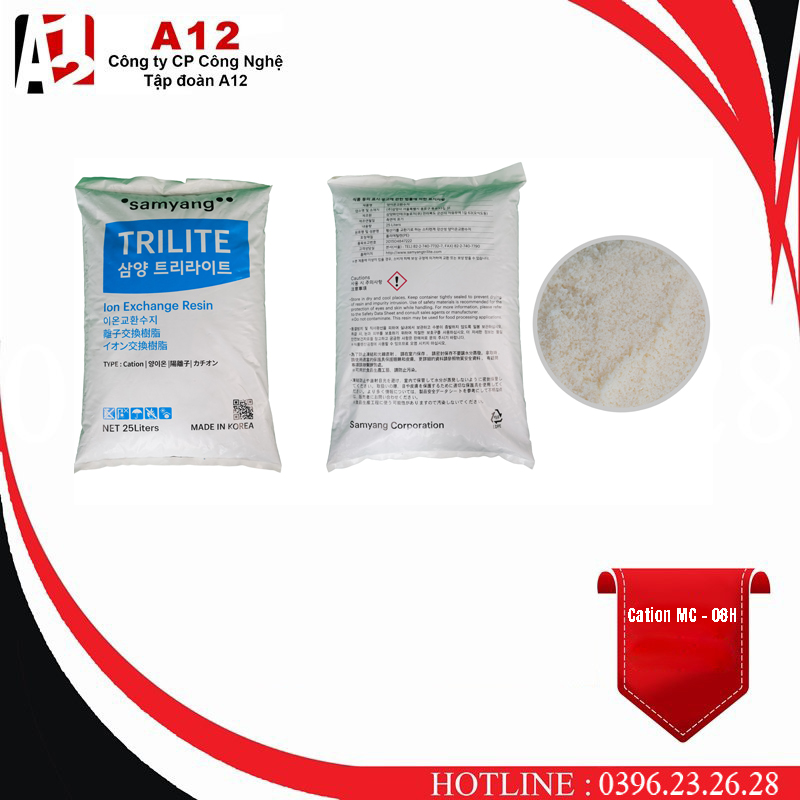 Cation Hàn Quốc MC08 Size 0,6mm là hạt nhựa trao đổi cation axit mạnh có cấu trúc gel là hạt ở dạng H+. Hạt Nhựa Cation Trilite MC-08H là hạt nhựa copolymer có nguồn gốc từ Styren-divynylbenzene với nhóm chức axit sulfonic.